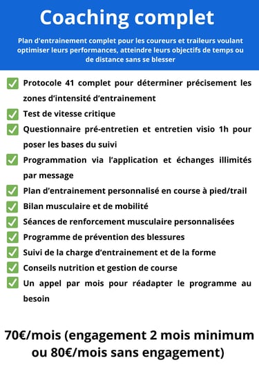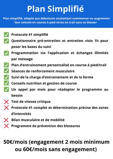 Un plan d'entrainement complet pour les coureurs et traileurs voulant optimiser leurs performances, atteindre leurs objectifs de temps ou de distance sans se blesser